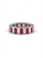 Add a splash of sweet color to your hand! This adorable eternity band features alternating ruby-red and sparkling clear baguette gems set all the way around in shiny silver. It’s super fun to wear alone for a pop of color or stacked with your other favorites for extra bling. Perfect for brightening up any outfit!